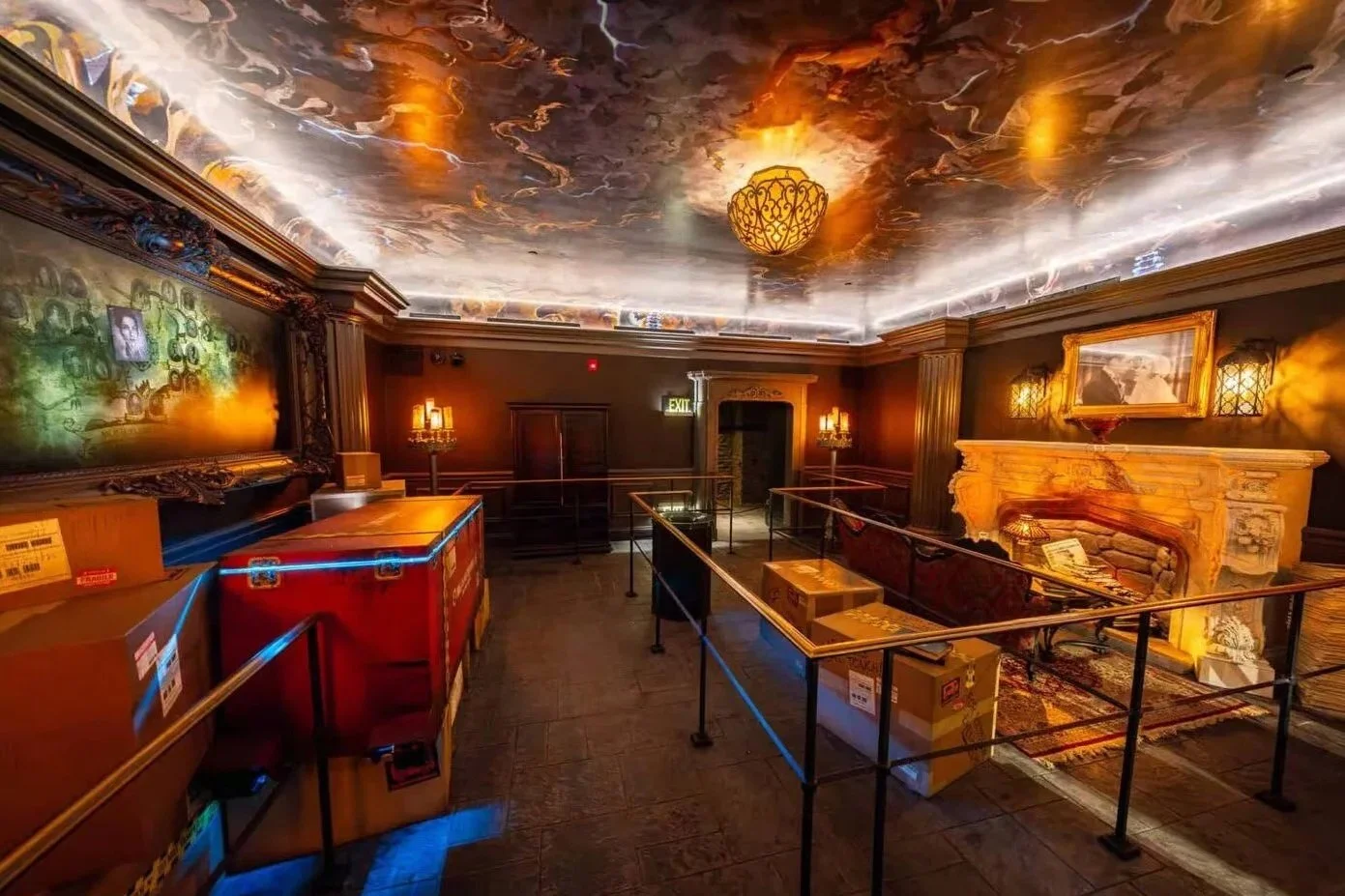 The catacombs serve as a metaphor for the literal legacy Victor Frankenstein left behind, one which Victoria has yet to fully unravel. However, the final and most compelling method of conveying these internal stakes comes from the queue. After a slight detour through some hallways, guests must climb a staircase flanked by disturbing murals to reach a landing upon which a portrait of Victor Frankenstein is hanging. After heading further into the manor, guests cross a balcony directly opposite the landing to pass a similar portrait of Victoria Frankenstein. This means that, through the experience of this attraction, guests must proceed past the victims of Victor Frankenstein’s work in order to literally ascend to meet his legacy, one which is directly being confronted by Victoria Frankenstein. The genius storytelling within this single foyer is stunning, and is only achievable within the medium of theme park design.
